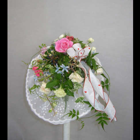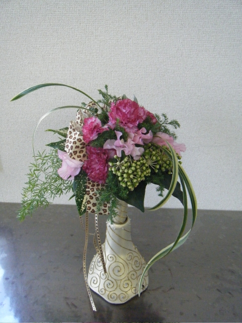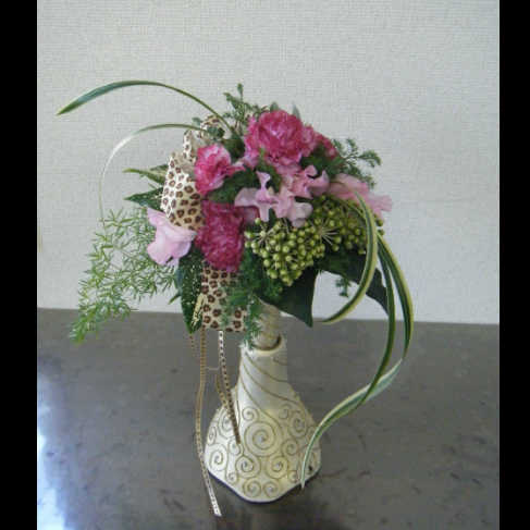 当スクールでは、レッスンだけでなく、ギフト用の花束やアレンジメント、イベント会場の花装飾、ウエデイングフラワーなど、お客様のご予算やご要望に応じた商品製作も承っております。ご注文金額1万円以上の場合、静岡県内無料配達、現地生け込みもいたします。マテリアルは、生花、造花、プリザーブドフラワーからお選び頂けます。